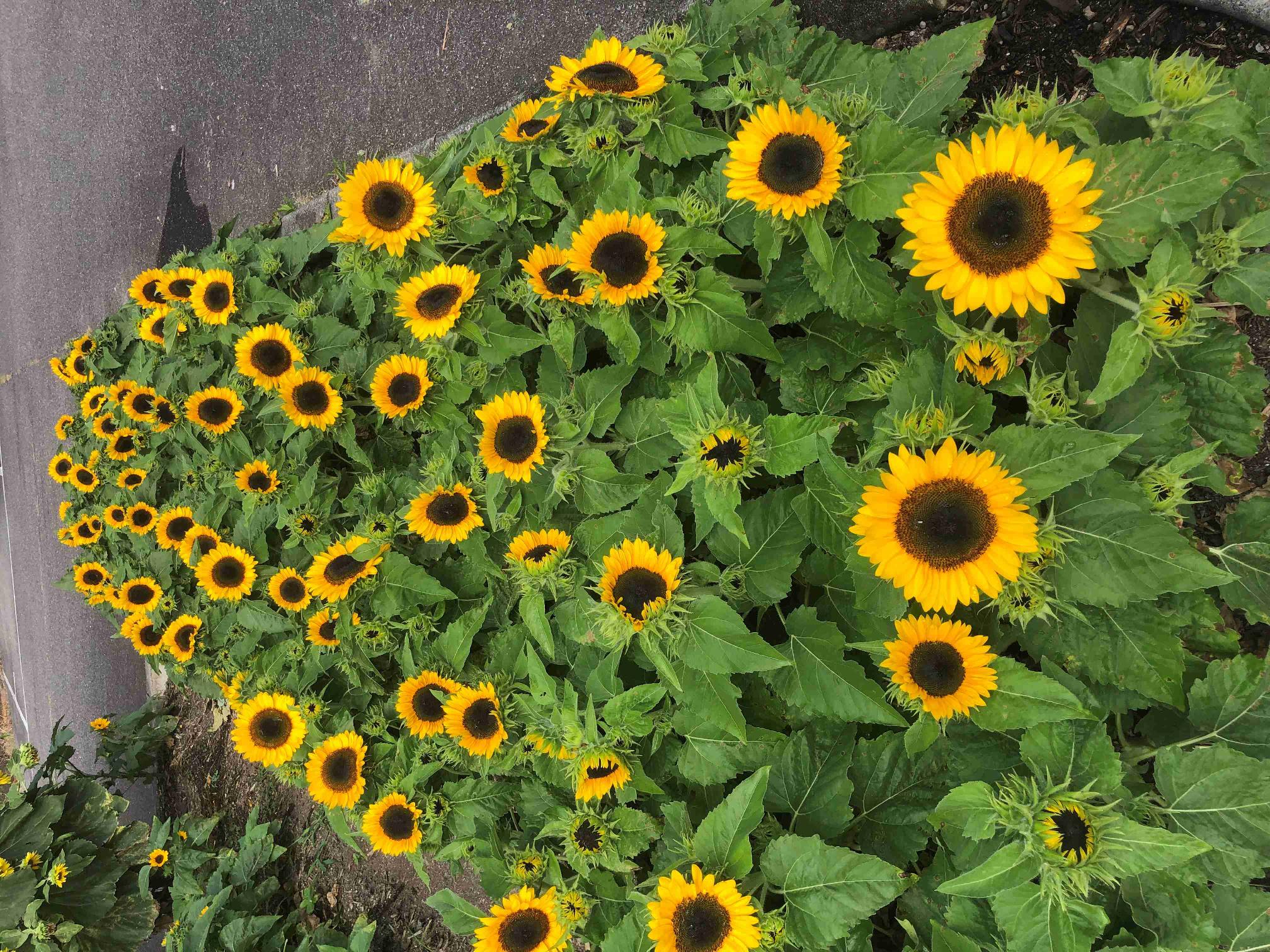 今年は初めて背の低いミニひまわりの種を植え、ようやく咲き誇りました。