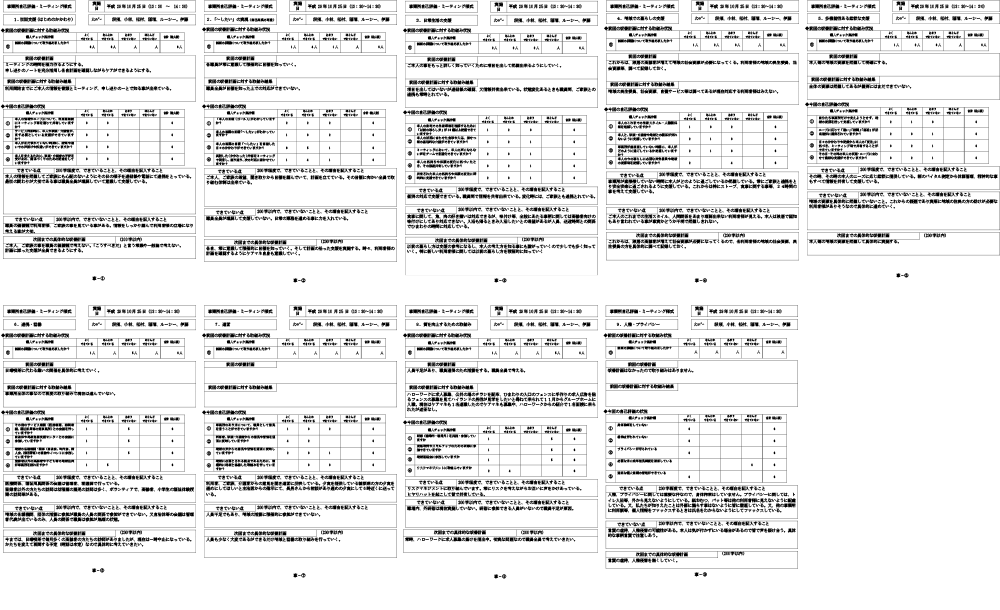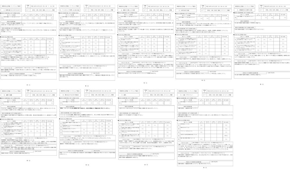 サービス評価は、職員の個別の評価を取りまとめた事業所の自己評価(サービス内容や課題等)について、運営推進会議で評価報告したうえで地域住民などが第三者の視点から評価を行うことで、新たな課題や改善点を明らかにし、サービスの質の向上を図ることを目的としています。